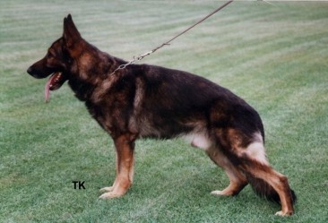 The fact that he was such a good breed dog is not surprising because his Sire was the top quality 1995 “Ulk v. Arlett”, who he closely resembled, His Dam, “Elke v. Drei Madelhaus” was also a very well constructed bitch. Her sire was “Eros vom Kampschen”, whose bloodlines go back to the very important “Nick v.d. Wienerau”.